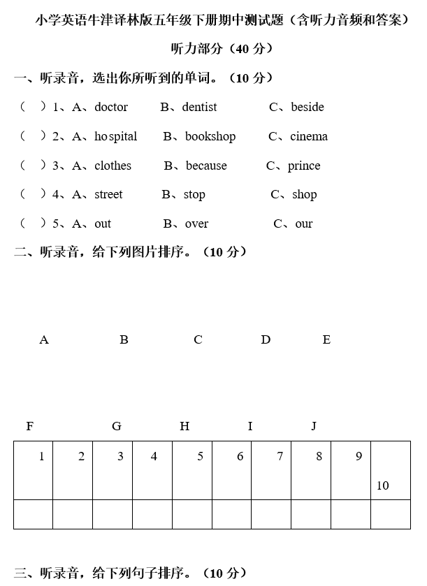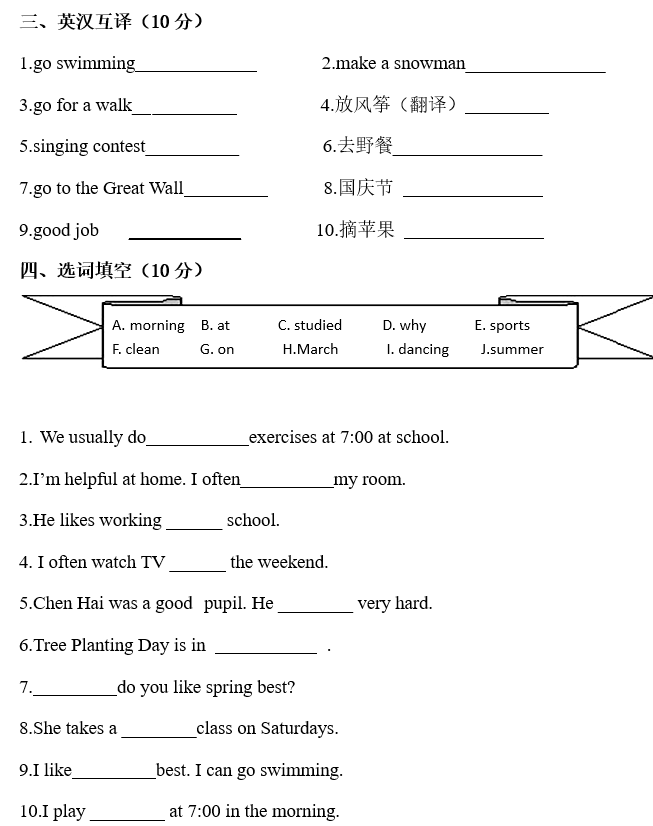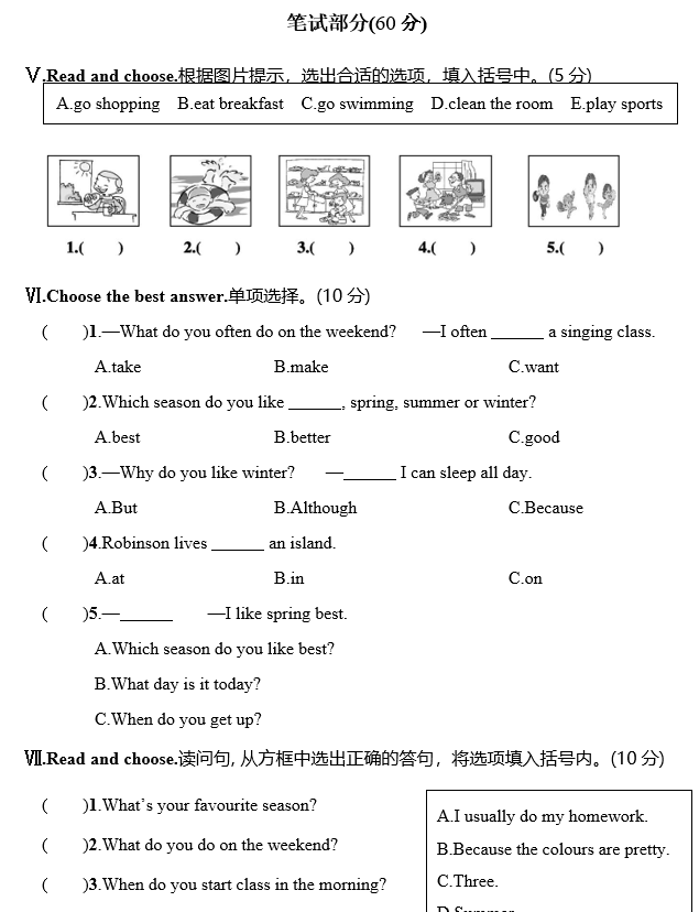 11份打包!五下英语【人教PEP版】月考试卷【超高质量】