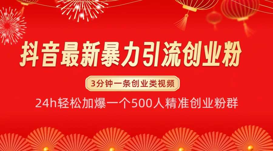 抖音最新暴力引流创业粉,24h轻松加爆一个500人精准创业粉群【揭秘】