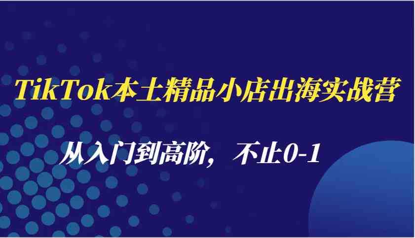 TikTok本土精品小店出海实战营,从入门到高阶,不止0-1