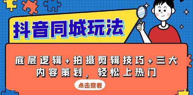 抖音同城玩法,底层逻辑+拍摄剪辑技巧+三大内容策划,轻松上热门