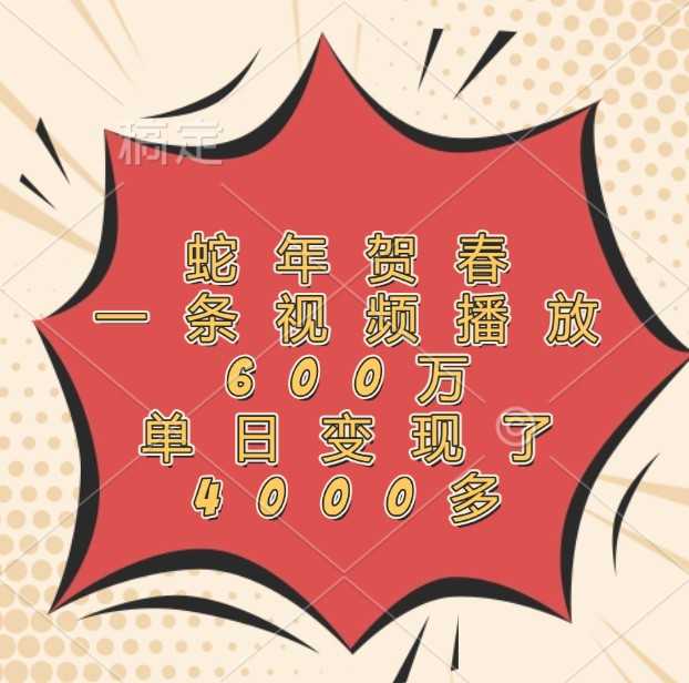 蛇年贺春,一条视频播放600万,单日变现了4000多