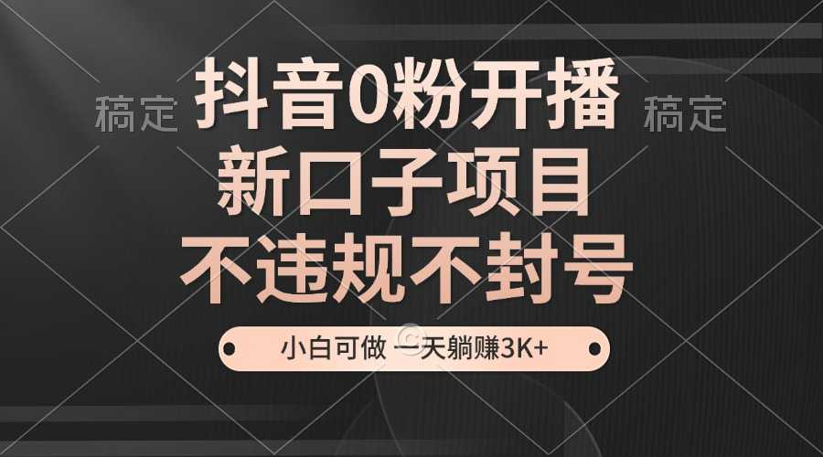 抖音0粉开播,新口子,不违规不封号, 小白可做,一天躺赚3k+