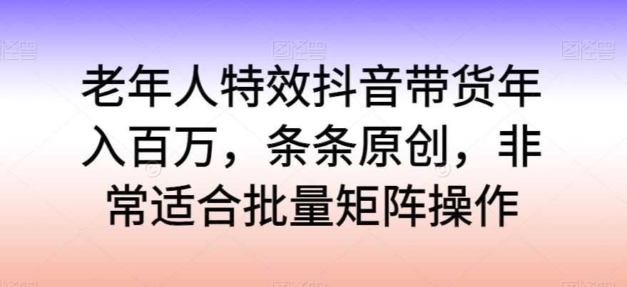 老年人特效抖音带货年入百万,条条原创,非常适合批量矩阵操作【揭秘】