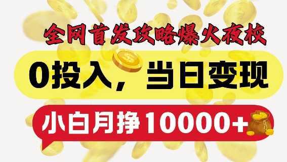 全网首发爆火夜校,0投入,当日变现,小白轻松月入1w+【揭秘】