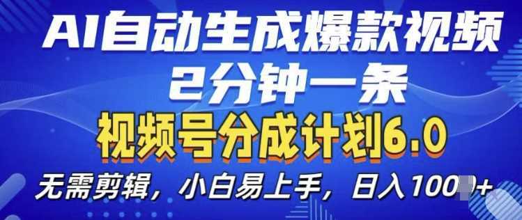 视频分成计划6.0,AI自动生成爆款视频,2分钟一条,小白易上手【揭秘】