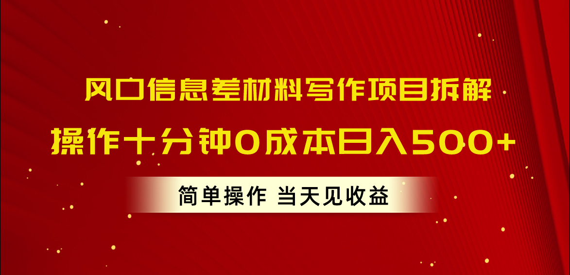 (10770期)风口信息差材料写作项目拆解,操作十分钟0成本日入500+,简单操作当天…