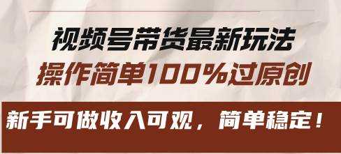 (13337期)视频号带货最新玩法,操作简单100%过原创,新手可做收入可观,简单稳定!