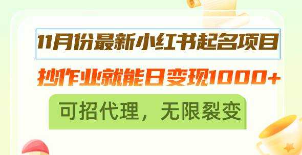(13256期)11月份最新小红书起名项目,抄作业就能日变现1000+,可招代理,无限裂变