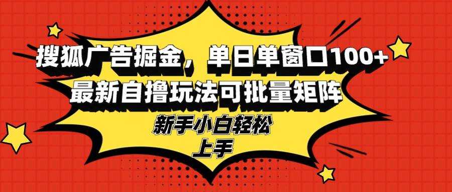 (13116期)搜狐广告掘金,单日单窗口100+,最新自撸玩法可批量矩阵,适合新手小白