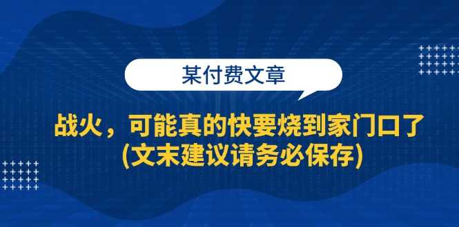 (13008期)某付费文章:战火,可能真的快要烧到家门口了 (文末建议请务必保存)