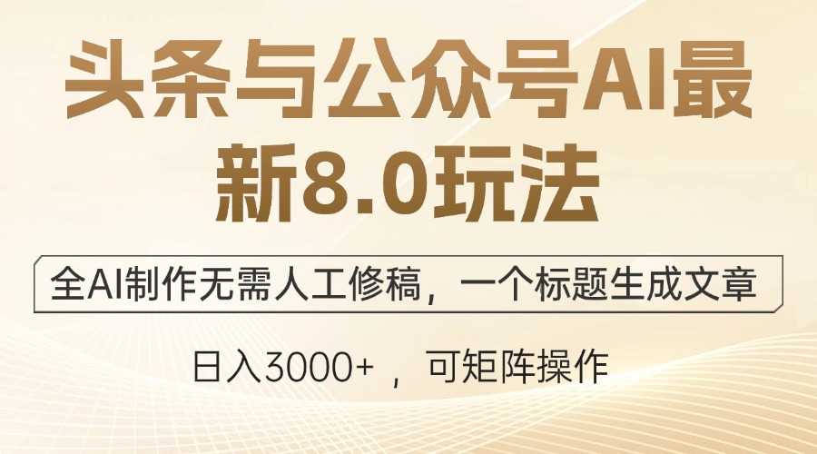 (12597期)头条与公众号AI最新8.0玩法,全AI制作无需人工修稿,一个标题生成文章…