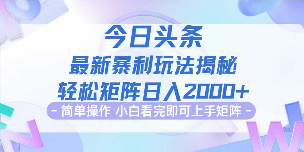 (12584期)今日头条最新暴利掘金玩法揭秘,动手不动脑,简单易上手。轻松矩阵实现…