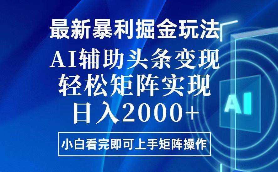 (13713期)今日头条最新暴利掘金玩法,思路简单,上手容易,AI辅助复制粘贴,轻松…