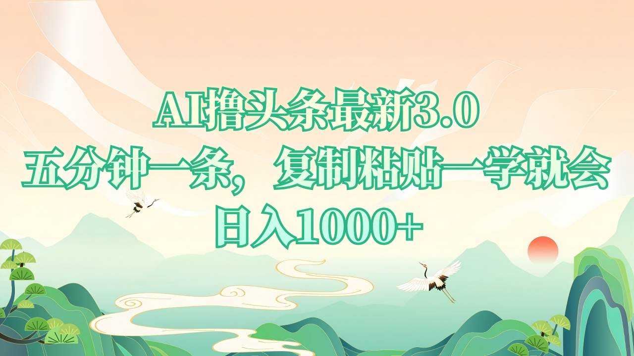 (13746期)AI撸头条最新3.0,5分钟一条,复制粘贴一学就会,日入1000+