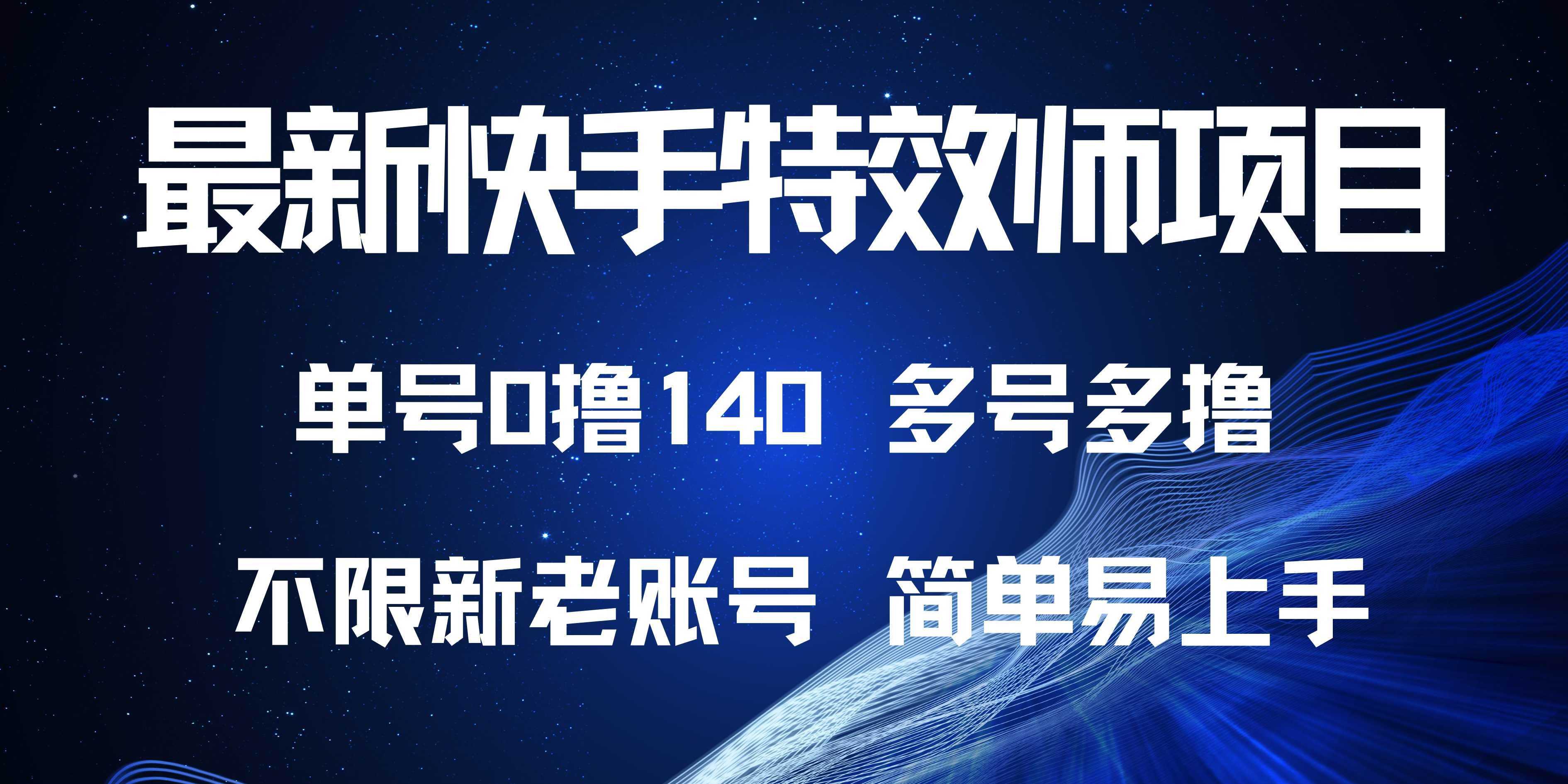 (13623期)最新快手特效师项目,单号白嫖0撸140,多号多撸