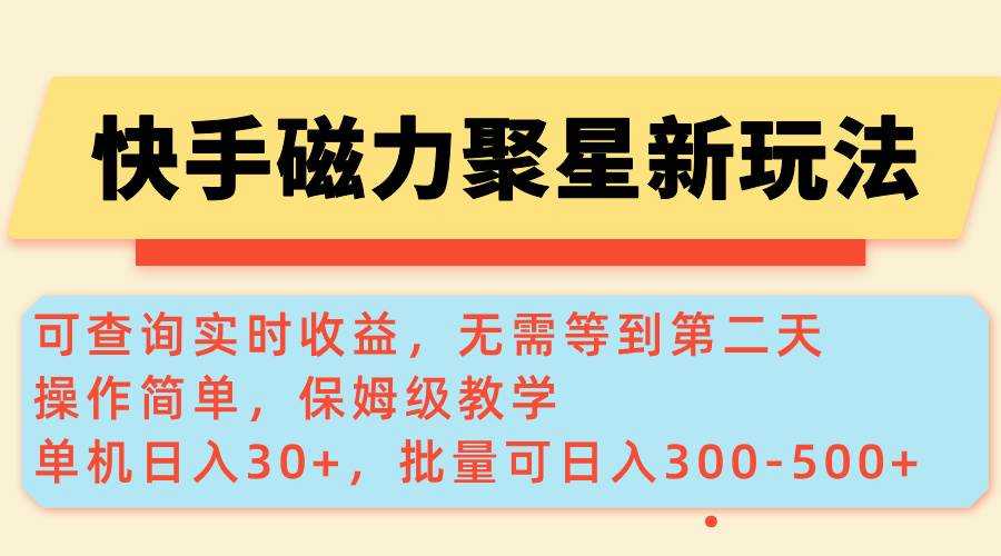 (14201期)快手磁力新玩法,可查询实时收益,单机30+,批量可日入300-500+