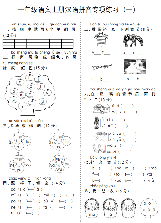 25份打包!一上语文【专项练习】3汉语拼音【超高质量】