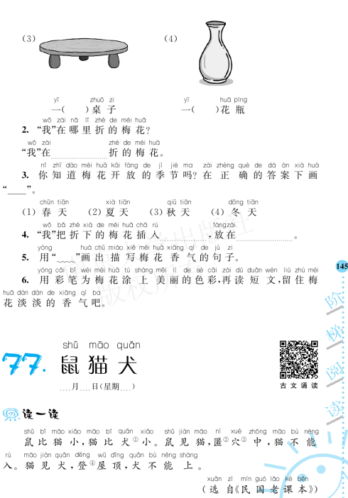 4份打包!一上语文 阅读理解专项训练(第1套)【超高质量】