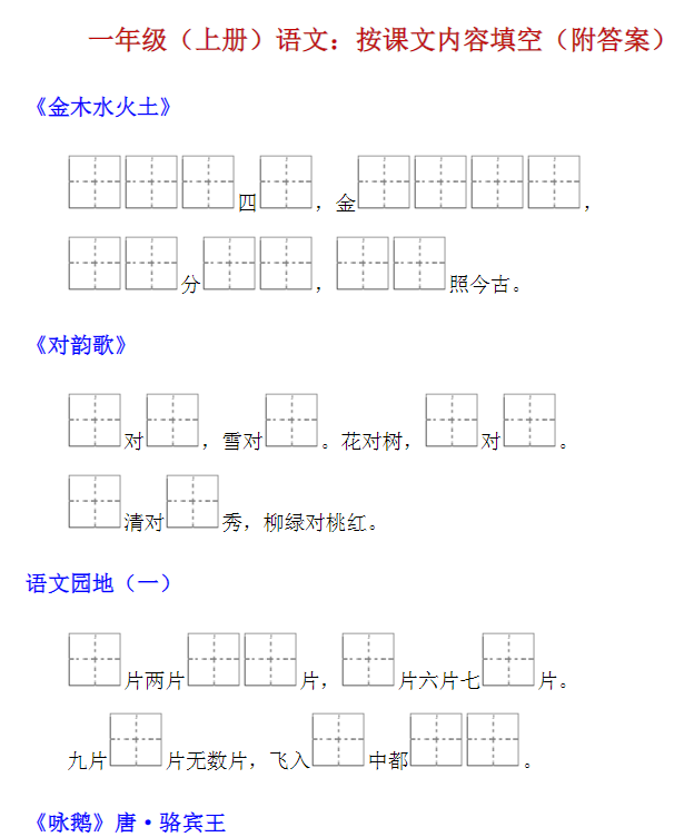 一年级上册专享训练:拼音,小古文,词语,句子