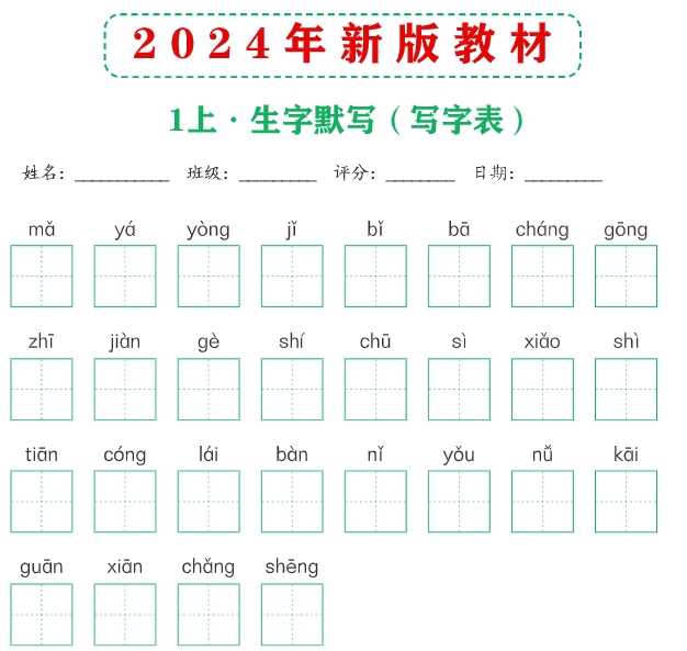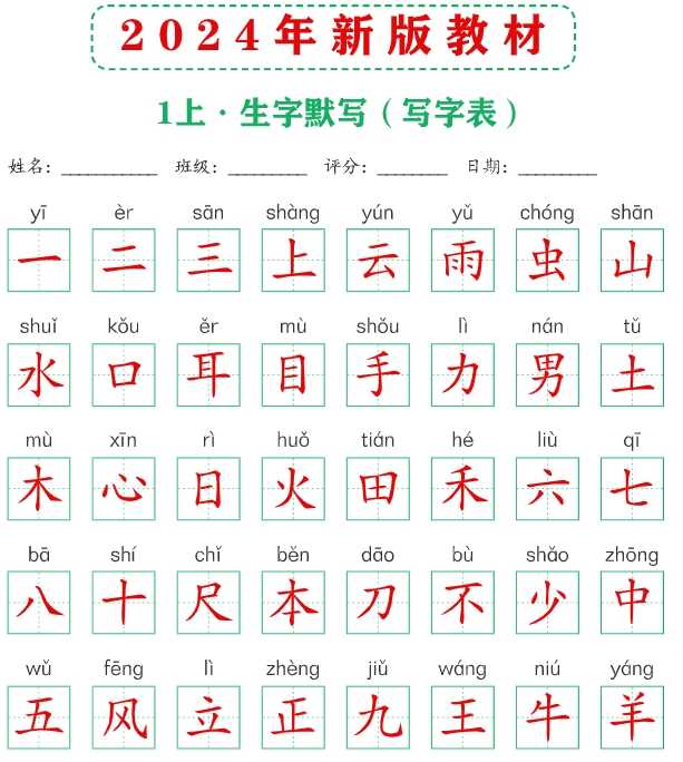 【2024秋季版新教材】 新版教材1上课后词语默写表【4页】