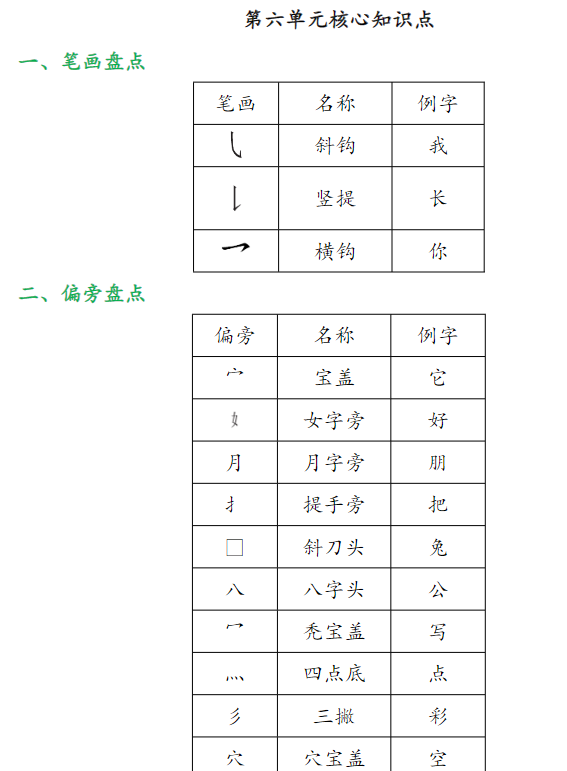 一年级上册语文1-8单元必考知识点总结