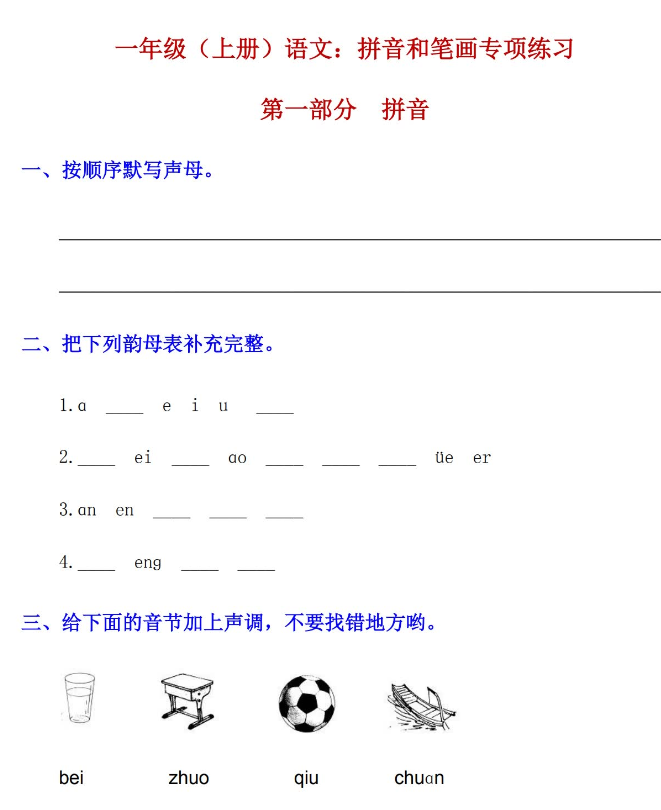 一年级上册拼音+汉字专项学习