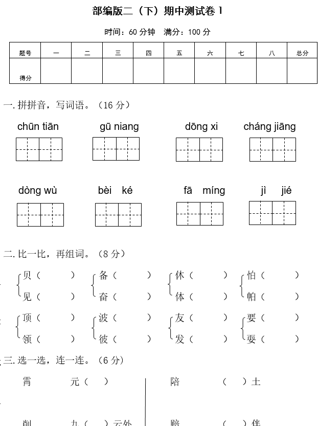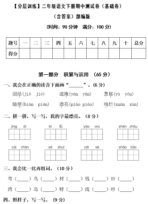 首页 > 全部 > 二下语文 > 24份打包!二年级语文下册 期中试卷【超高质量】