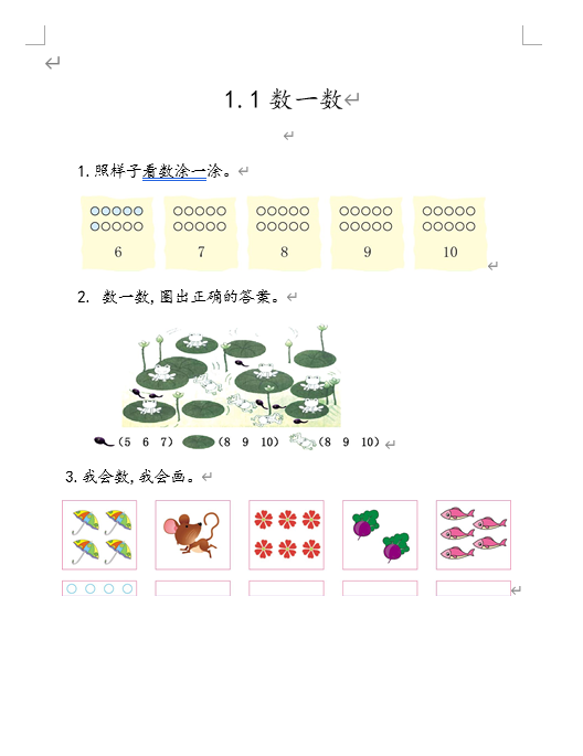 67份打包!一年级数学上册【北京课改版】一课一练【超高质量】