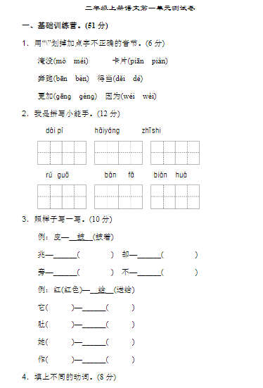 【语文二上抖音资料】 月考检测试卷精品集大全