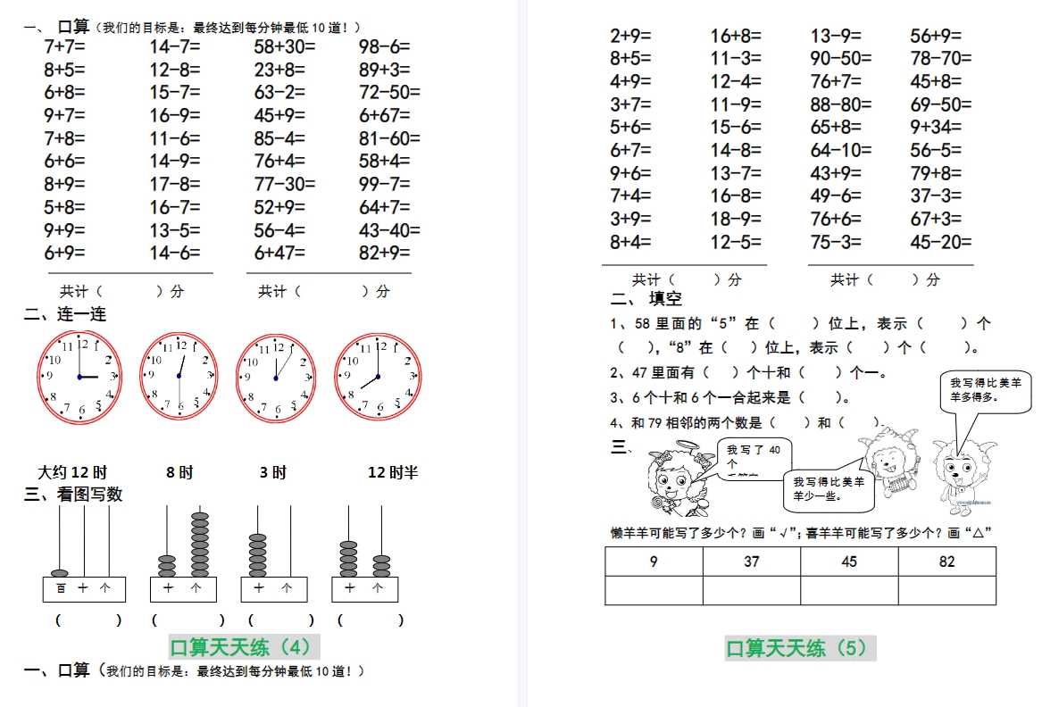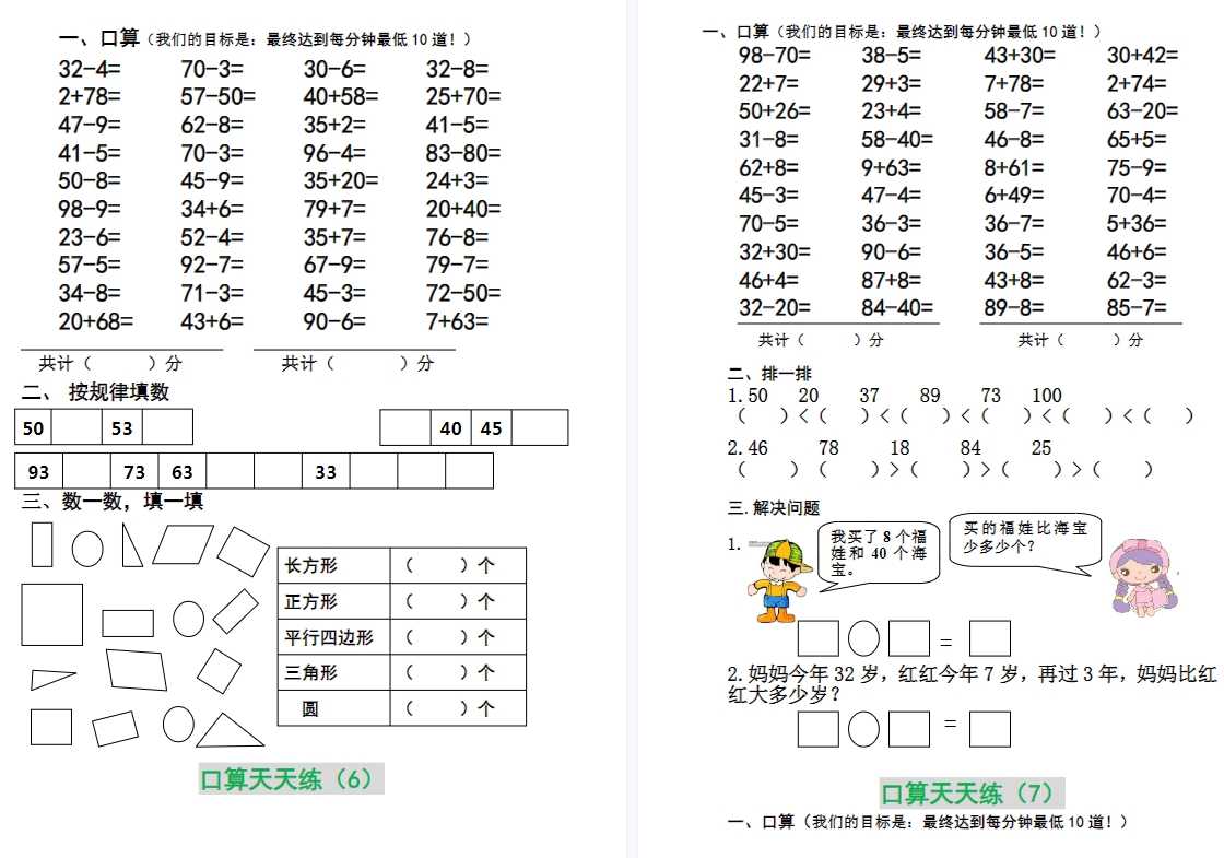 30页打包!一年级数学上册 30套基础题型,电子版PDF可打印【超高质量】