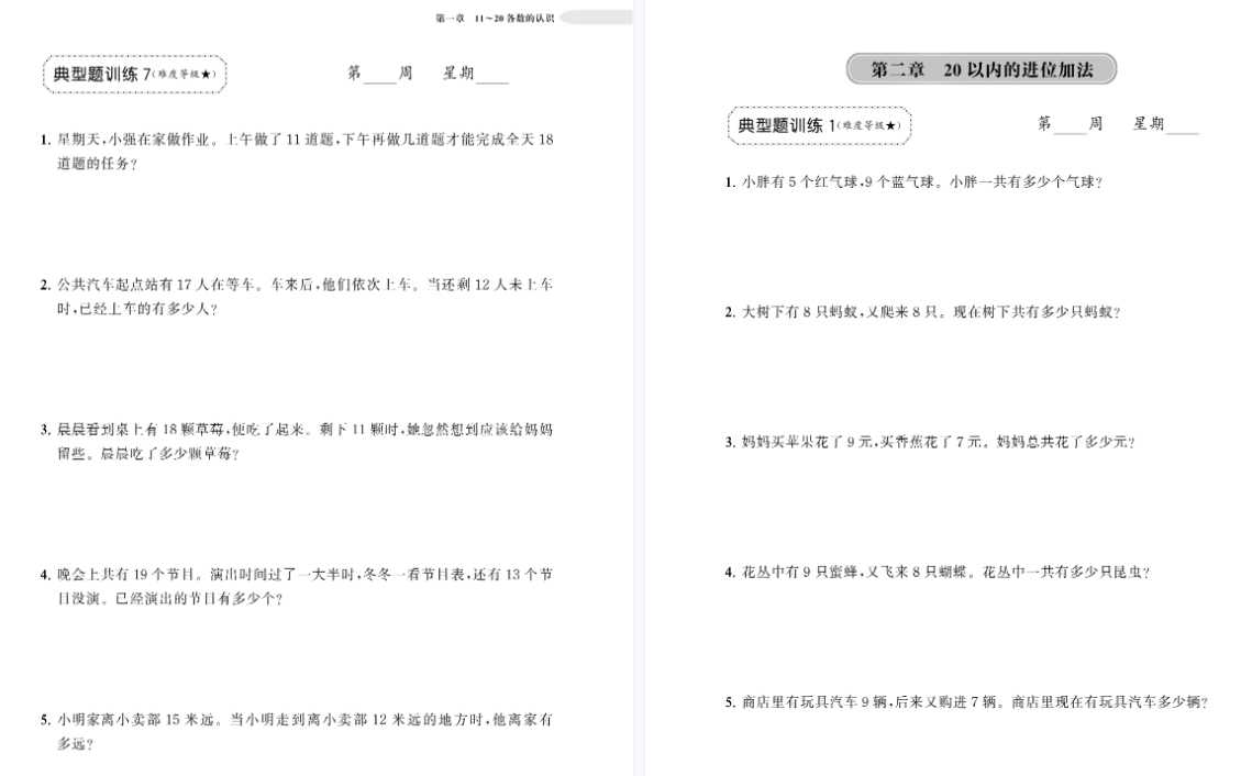 首页 > 全部 > 一上数学 > 113页打包!一年级数学周计划应用题强化训练,电子版PDF可打印【超高质量】