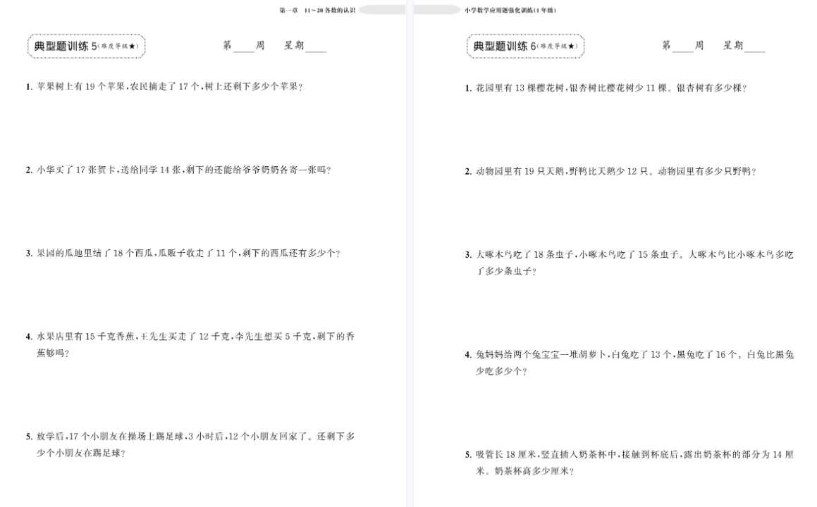 113页打包!一年级数学周计划应用题强化训练,电子版PDF可打印【超高质量】