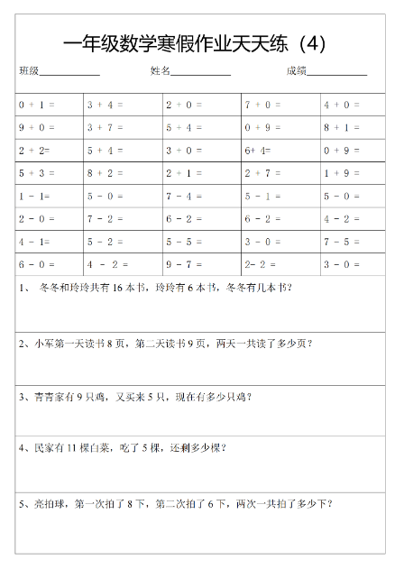【数学寒假抖音资料】一年级上人教版精品集大全