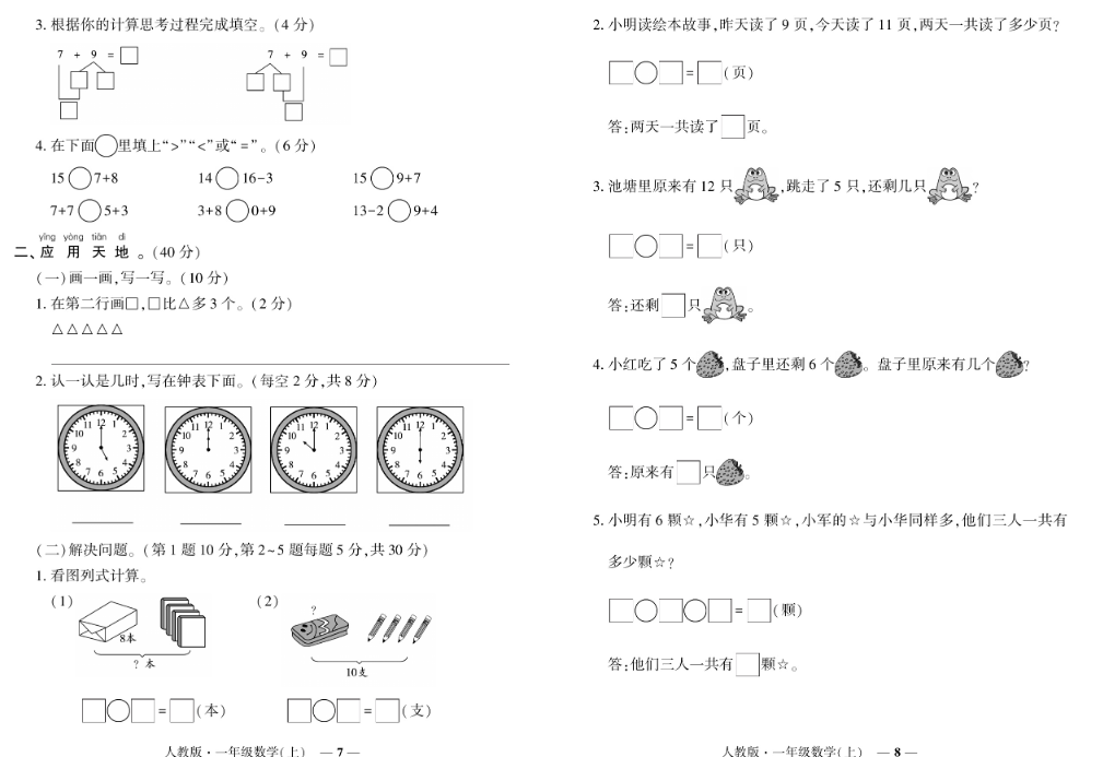 首页 > 全部 > 一上数学 > 《期末真题汇编》数学一年级上册(RJ版)