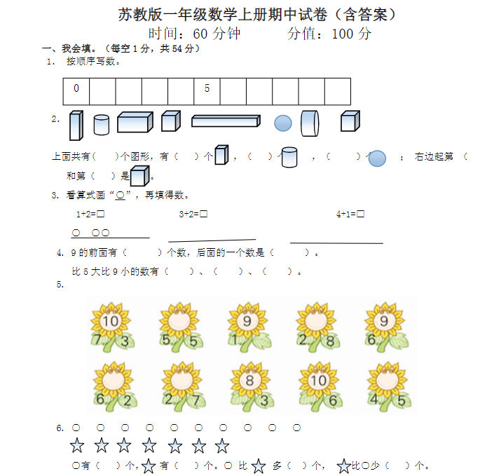 首页 > 全部 > 一上数学 > 【苏教数学一上】 期中试卷