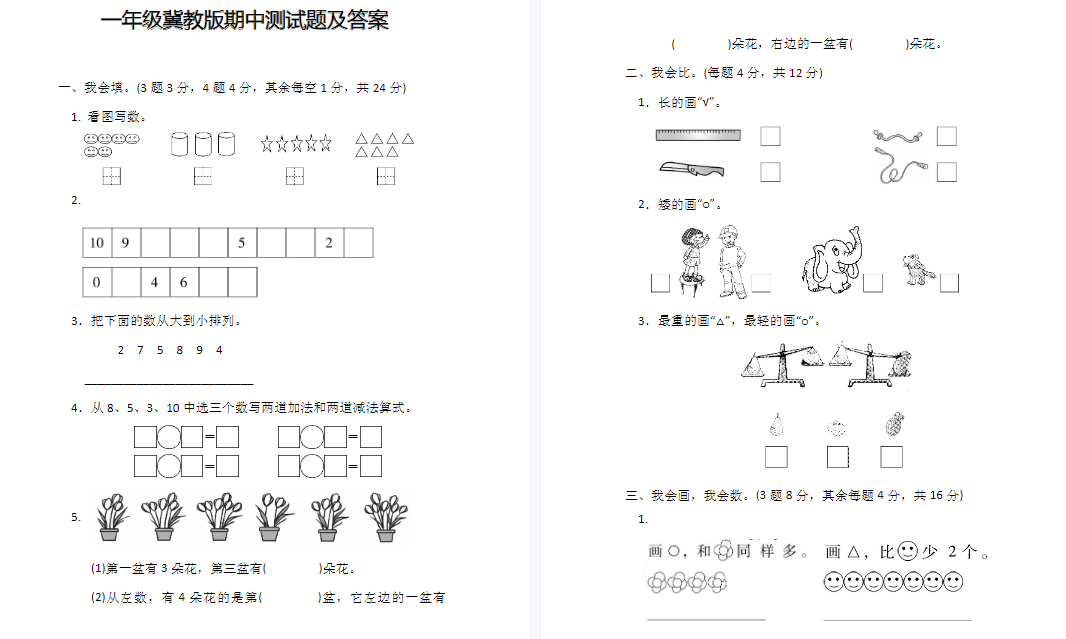 首页 > 全部 > 一上数学 > 【冀教数学一上】 期中试卷