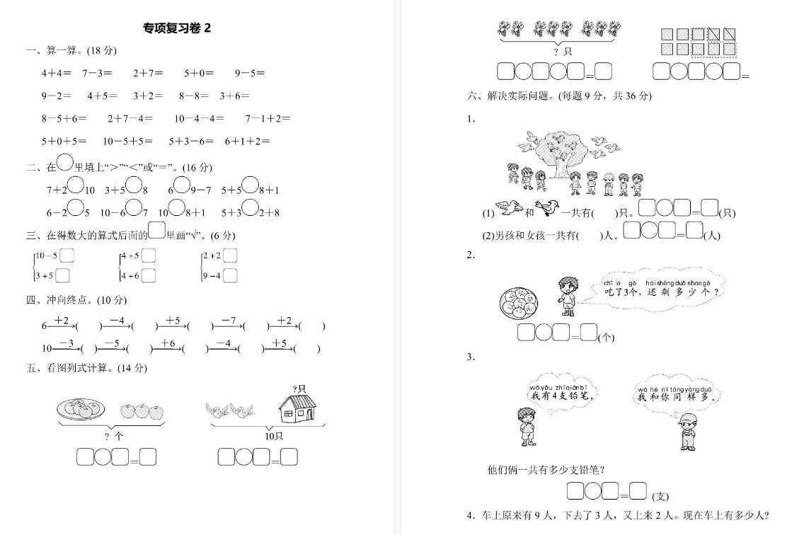 8份打包!数学一年级上册专项训练(含答案),电子版PDF可打印【超高质量】