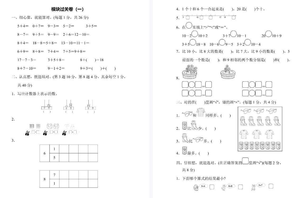 首页 > 全部 > 一上数学 > 8份打包!数学一年级上册专项训练(含答案),电子版PDF可打印【超高质量】