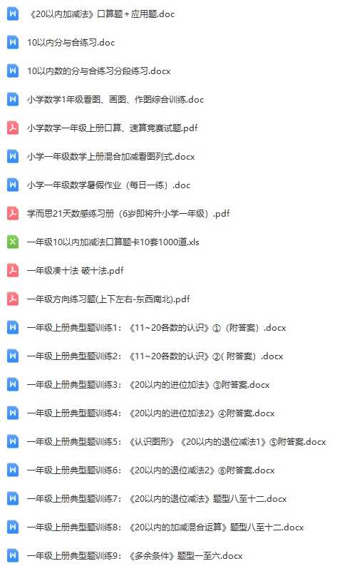 47份打包!一年级数学专项训练学习,电子版PDF可打印【超高质量】