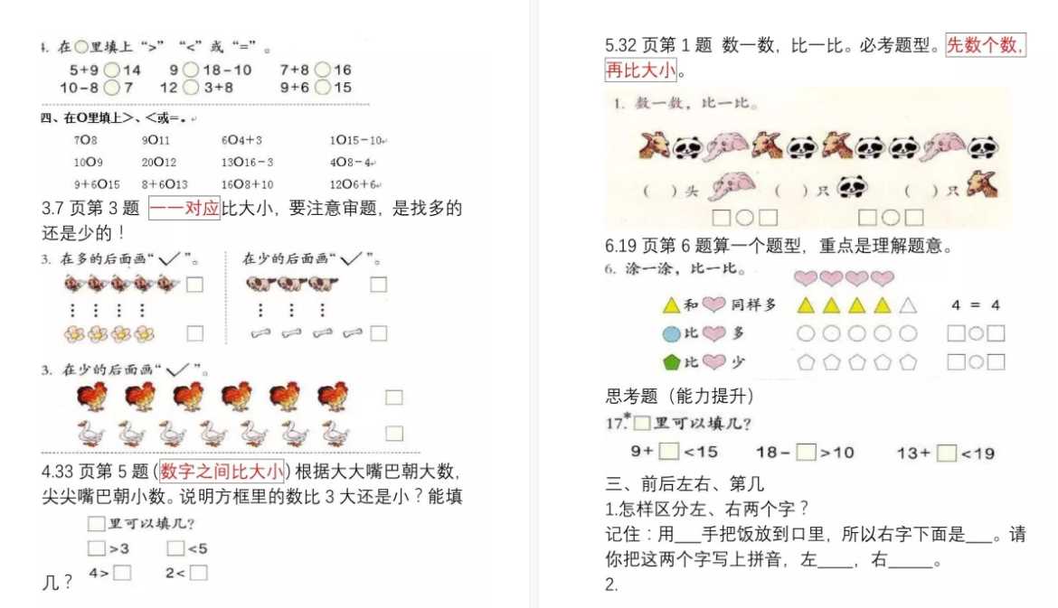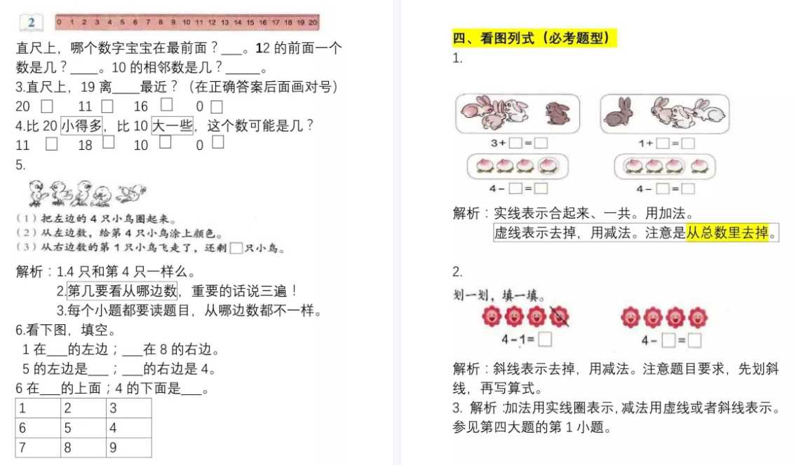 22页打包!一年级数学重点难点知识总结,电子版PDF可打印【超高质量】