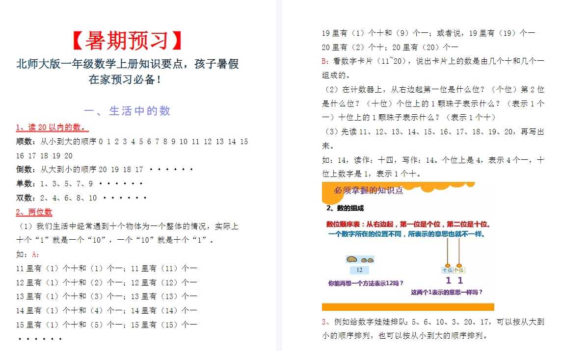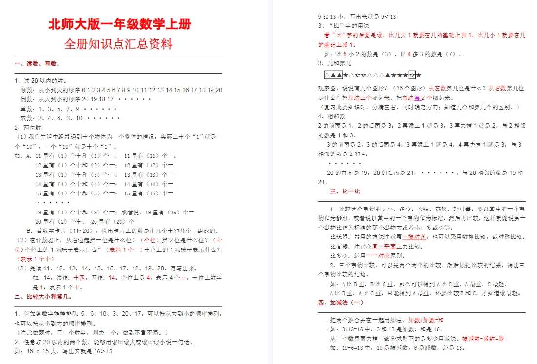 6份打包!一年级数学知识点汇总,电子版PDF可打印【超高质量】