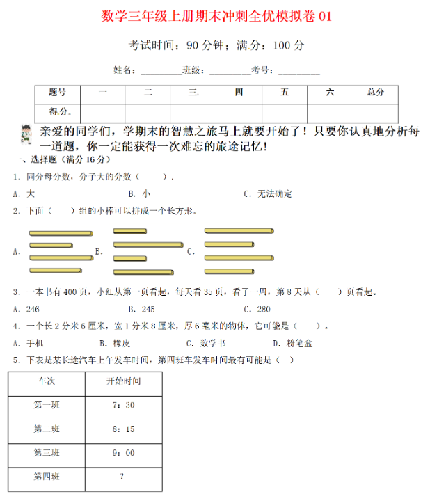 首页 > 全部 > 三上数学 > 【人教数学三上】 期末试卷