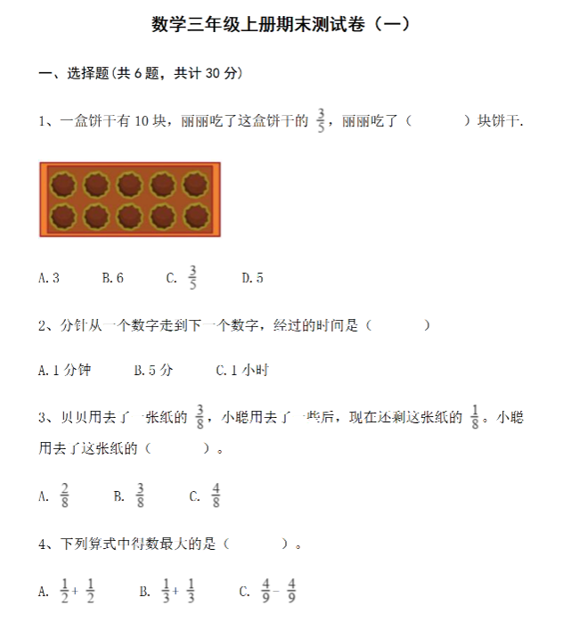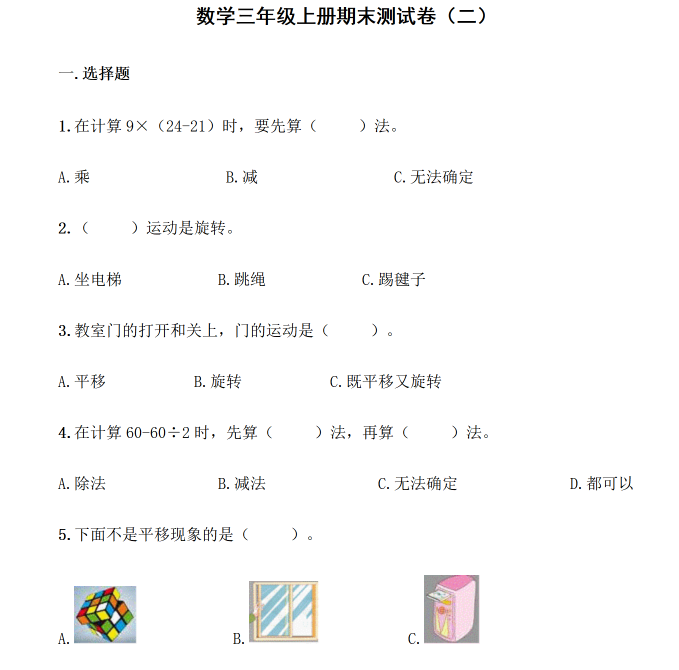 【青岛六三数学三上】 期末测试