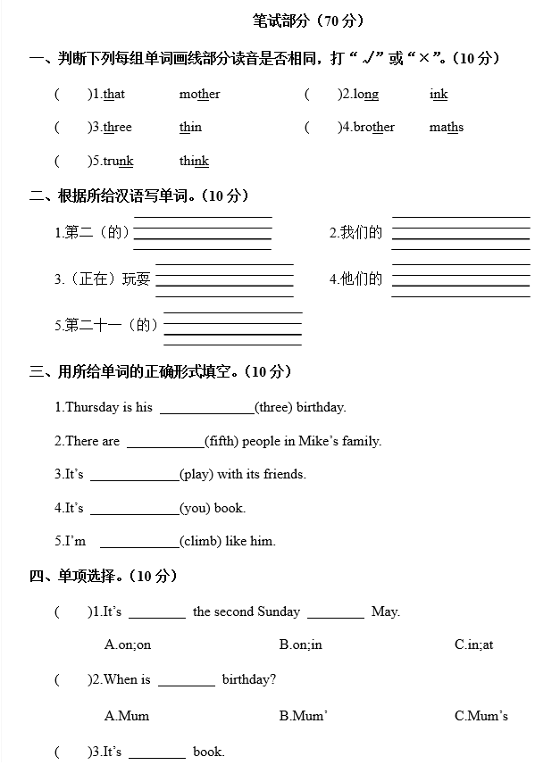 首页 > 全部 > 五下英语 > 11份打包!五下英语【人教PEP版】月考试卷【超高质量】