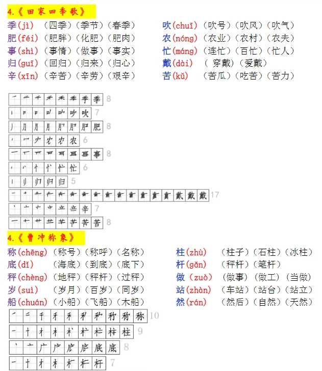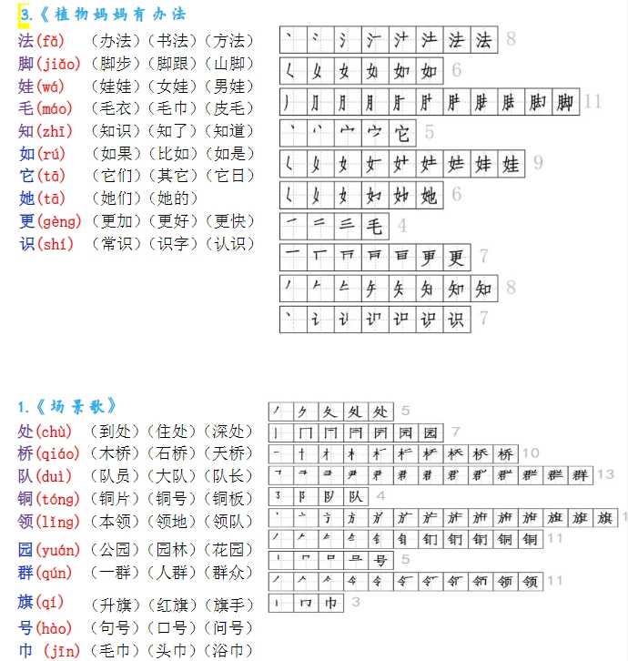 【2024秋季版新教材】二上《生字拼音、笔顺、组词》-完整版【15页】