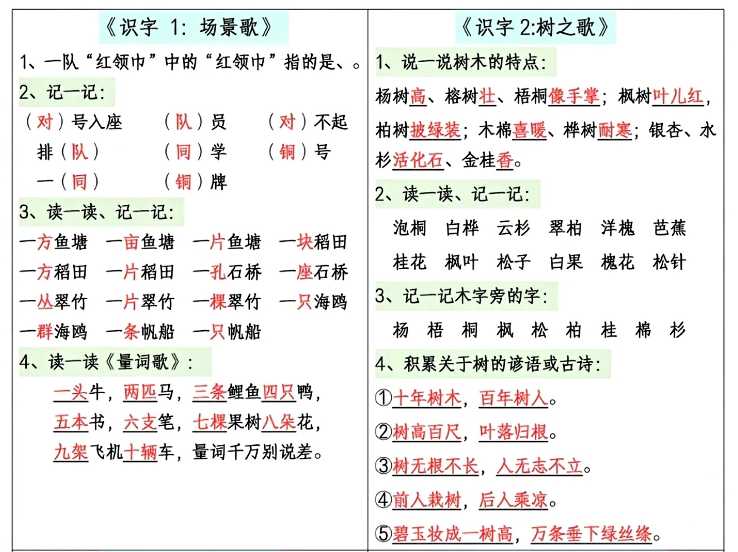 【2024秋季版新教材】 二年级上册语文每课生字组词造句课课贴【5页】