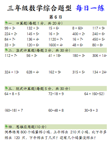 首页 > 全部 > 三上数学 > 三年级数学综合题型 每日一练