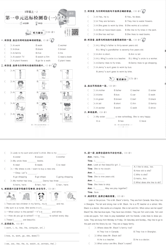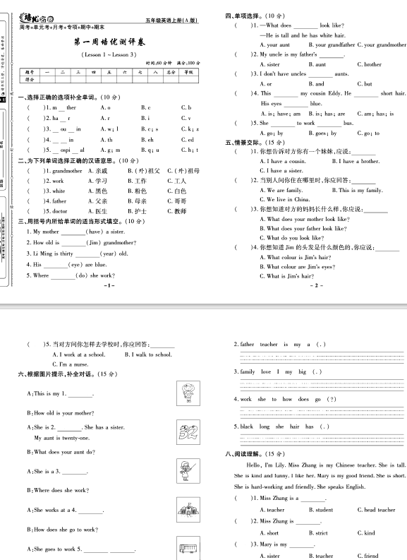 9份打包!五年级英语上册【冀教版】试卷册类【超高质量】