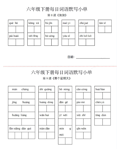 首页 > 全部 > 六下语文 > 六年级下册词语默写小纸条