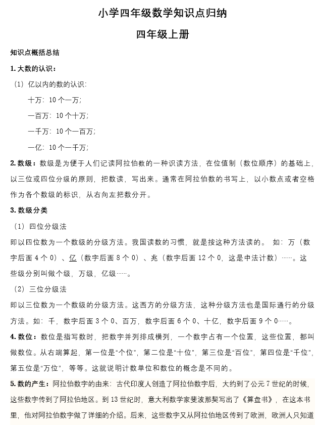 10份打包!四年级数学上册【人教版】知识总结【超高质量】